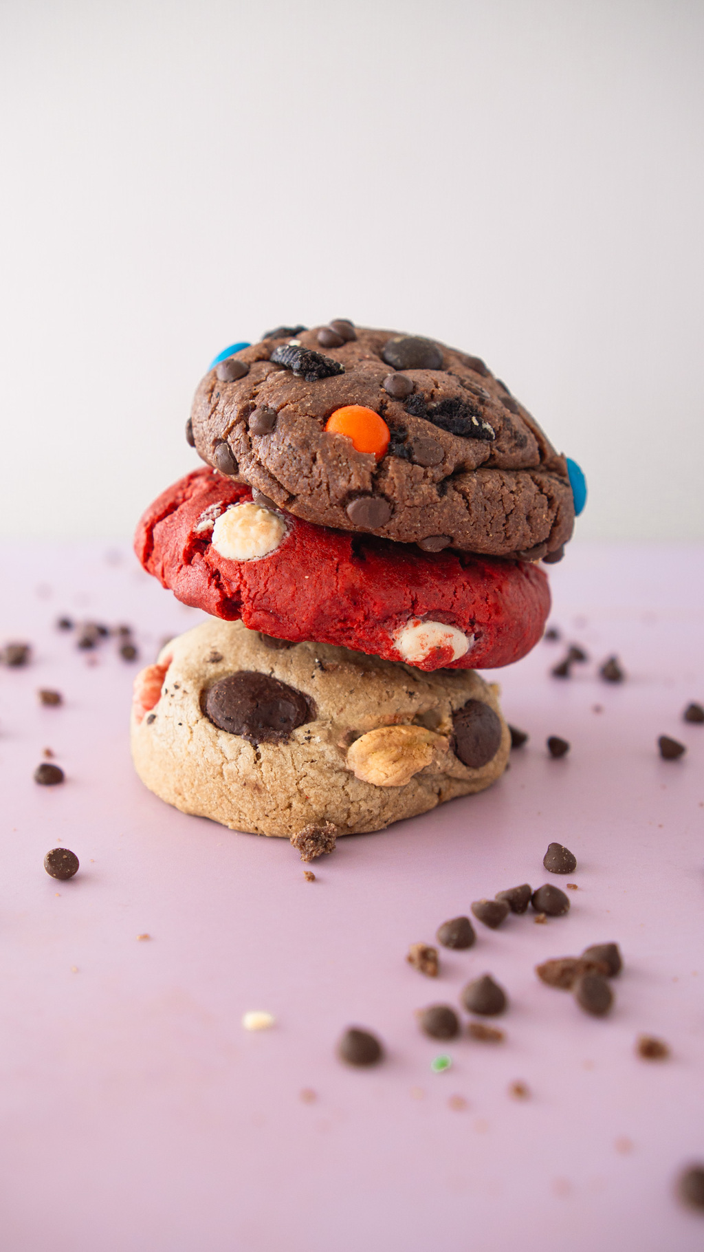 Galleta de chocolate con trozos de Oreo y colorido chips de chocolate. Un abrazo dulce y divertido