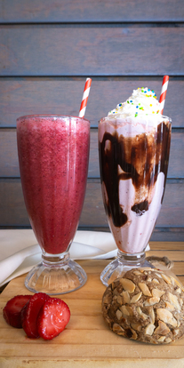 Milkshake cremoso que combina frutilla y helado de vainilla coronado con suave crema batida y un toque de salsa de chocolate o manjar, Que lo convierte en el sueño rosado mas dulce y refrescante.