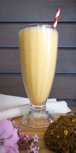 Smoothie, cremoso natural yogurt lleno de energía. Un batido con yogurt y frutas fresca de estación.