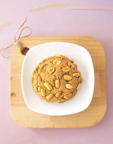 Galleta de vainilla chips de maní y un cremoso corazón de mantequilla maní. Un antojo que no podrás resistir.
